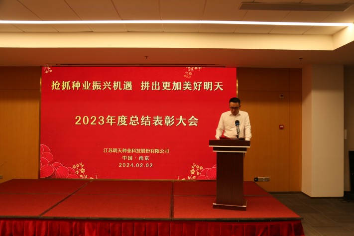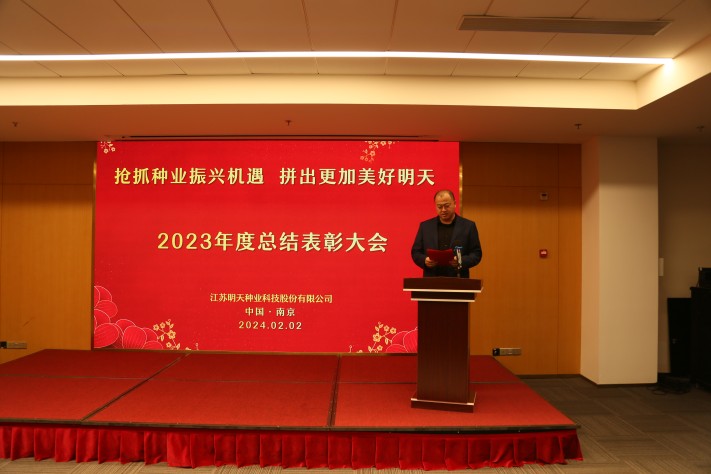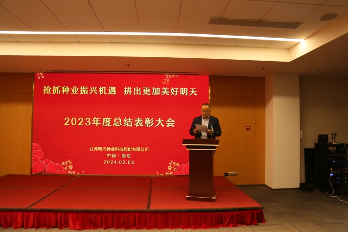 大會首先由總經理嚴輝民以公司近幾年的行動綱領搶抓種業振興機遇,拼出更加美好明天”為主題,作2023年度工作報告